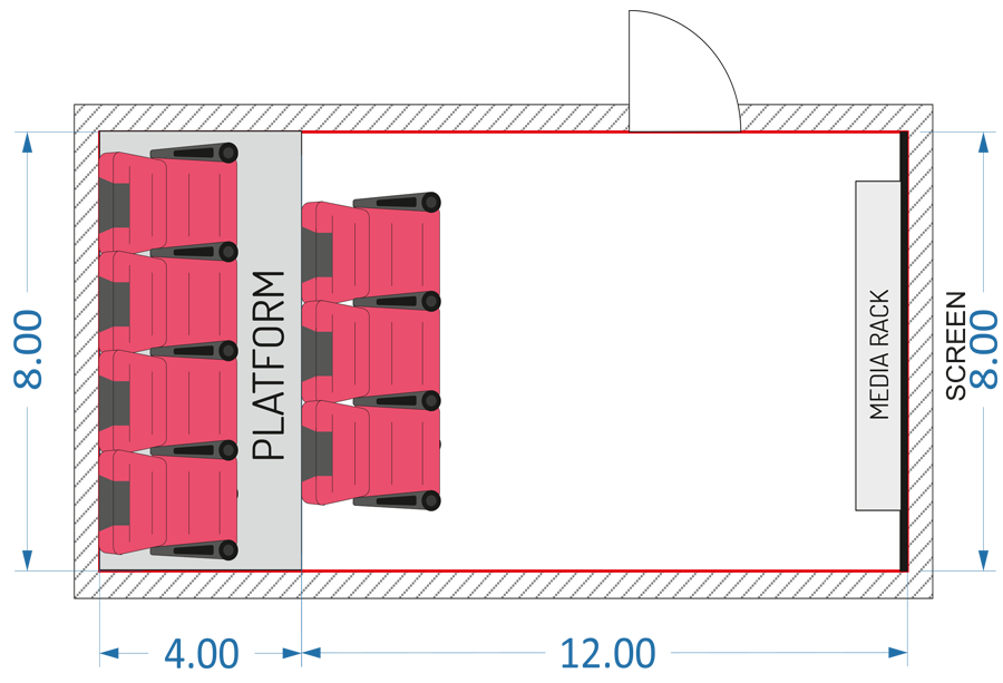 Media rack where you can put all the media control items like theatre sound control, power control and projector control